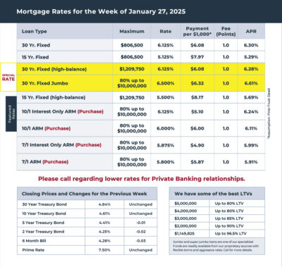 Mortgage Rates for the week of 1-27-2025