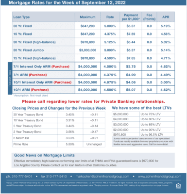 mortgage rates week of 9-12-2022